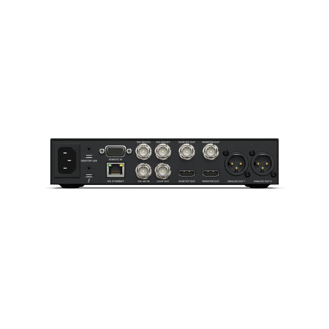 Blackmagic Media Player 10G es una potente solución de captura y reproducción equipada con la última tecnología de transmisión. Ofrece salidas duales 12G-SDI para reproducción completa y clave, así como captura 12G-SDI y Ethernet 10G que permite a los clientes utilizar DaVinci Resolve 19 como reproductor multimedia y solución de reproducción para los mercados de transmisión y producción en vivo, todo a través de una única conexión Thunderbolt