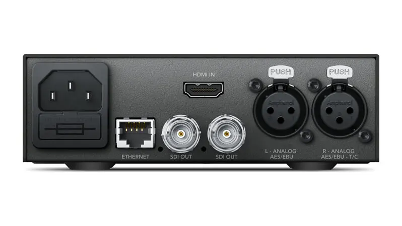 Este modelo permite obtener señales SDI 12G a partir de fuentes HDMI. Brinda la posibilidad de procesar múltiples velocidades de transmisión (SD, HD, 6G y 12G) y convierte contenidos HD a UHD. Asimismo, facilita la integración de canales de audio analógico balanceado o AES/EBU y códigos de tiempo. Es ideal para transformar el material grabado con cámaras HDMI o añadir salidas SDI a equipos informáticos que disponen de conexiones HDMI.